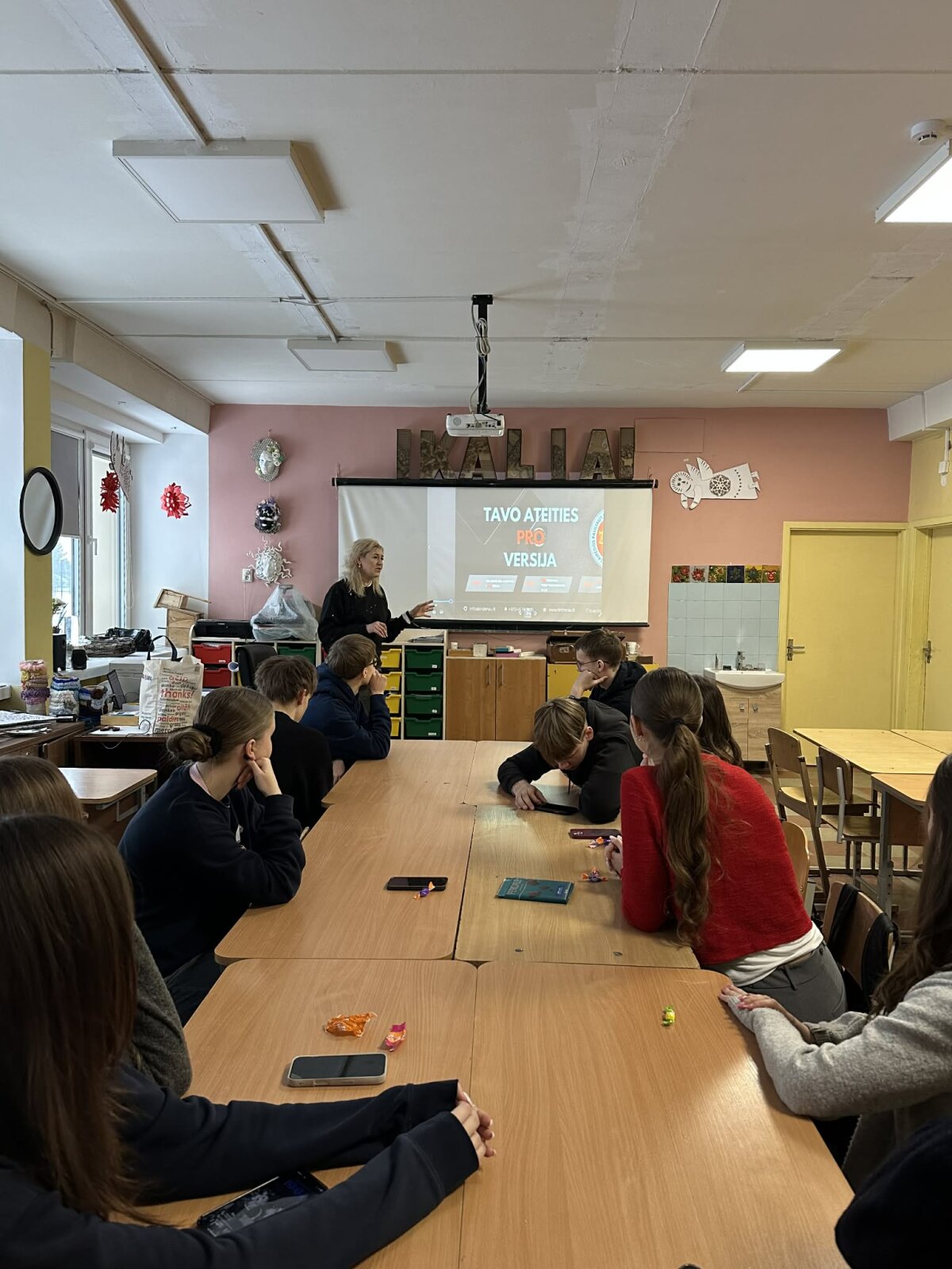 Specialistė išsamiai papasakojo apie karjeros galimybes mokymo centre, pristatė siūlomas profesijas bei studijų mokymosi formas. Mokiniai sužinojo, kad mokytis galima tiek po 10 klasės, tiek po 12 klasės, todėl pasirinkimų tikrai nemažai. Smagu girdėti, kad profesinis mokymas šiandien atveria tiek daug durų.